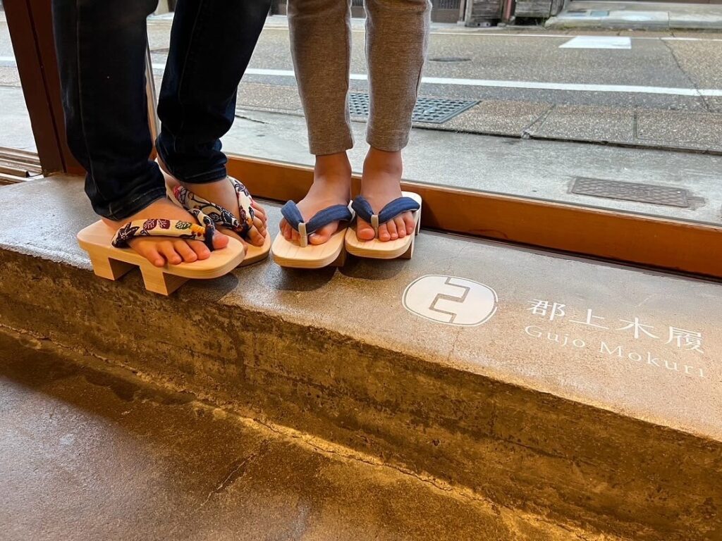 チラシを貼っていただいてる『泉屋』さん・マルシェに出店して頂く『郡上木履』さんにご挨拶。