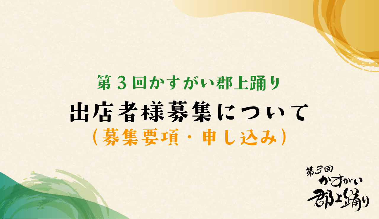 この度、第3回かすがい郡上踊りでイベントを共に盛り上げていただける出店者様を募集いたします!