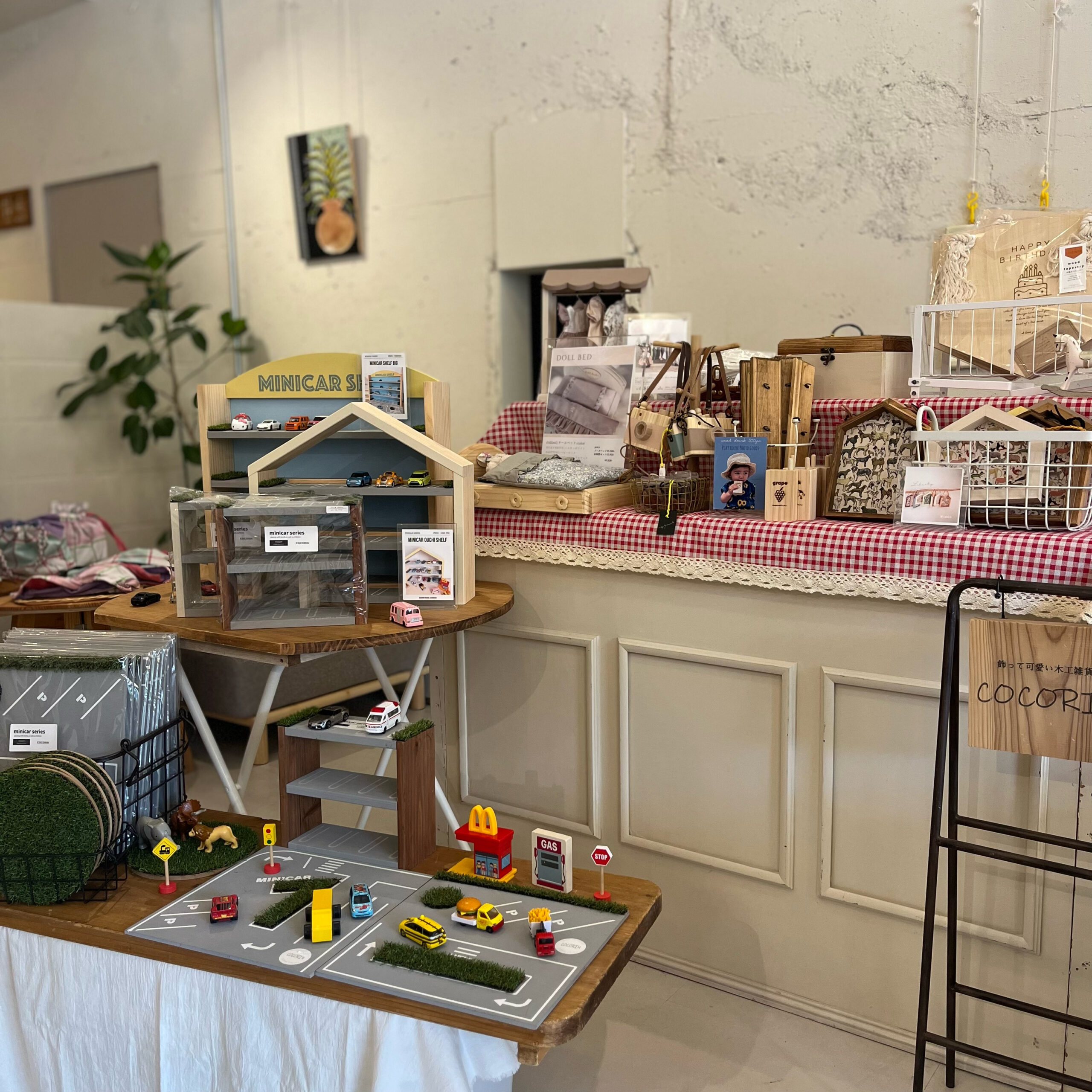 #こども木製雑貨 ミニカー好きに 道路をイメージした木製板は 繋げて遊ぶことができ 収納棚は 知育玩具としてもお迎えしてくださる方もいます。