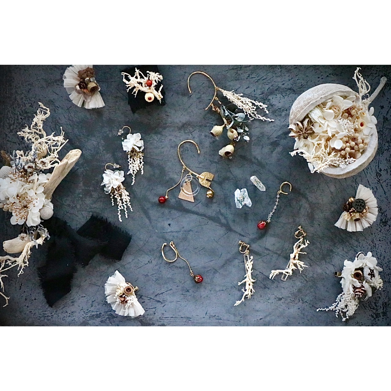 本物の花や木の実を使用した、オリジナルアクセサリー・リース、小物の販売