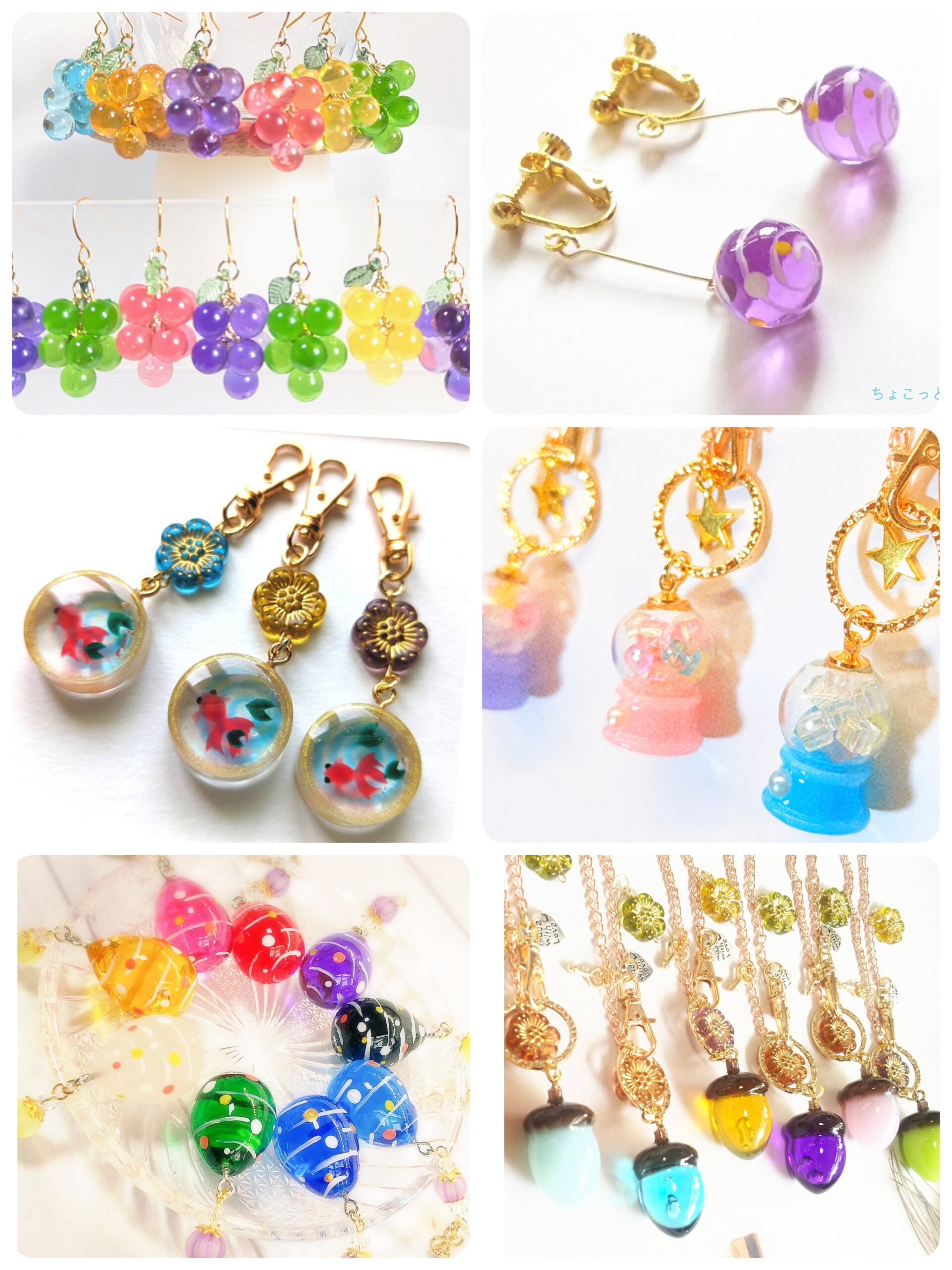 夏祭りの定番アイテム水風船は当ショップ人気アイテムとなります♪ガラスに見えるレジンアクセサリーをぜひ♪