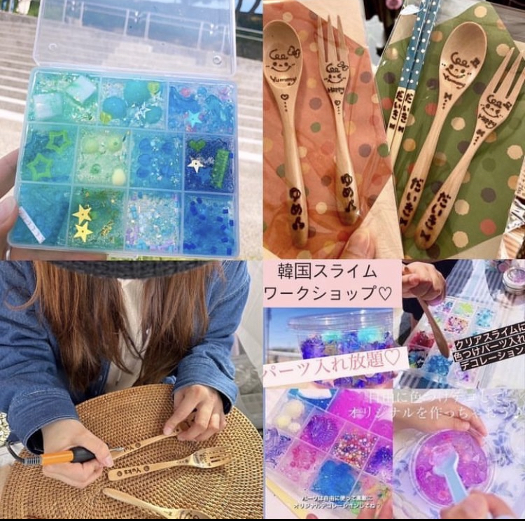 季節のレジンアクセサリー雑貨とシャカシャカキーホルダーにデコレーション等のワークショップ♪