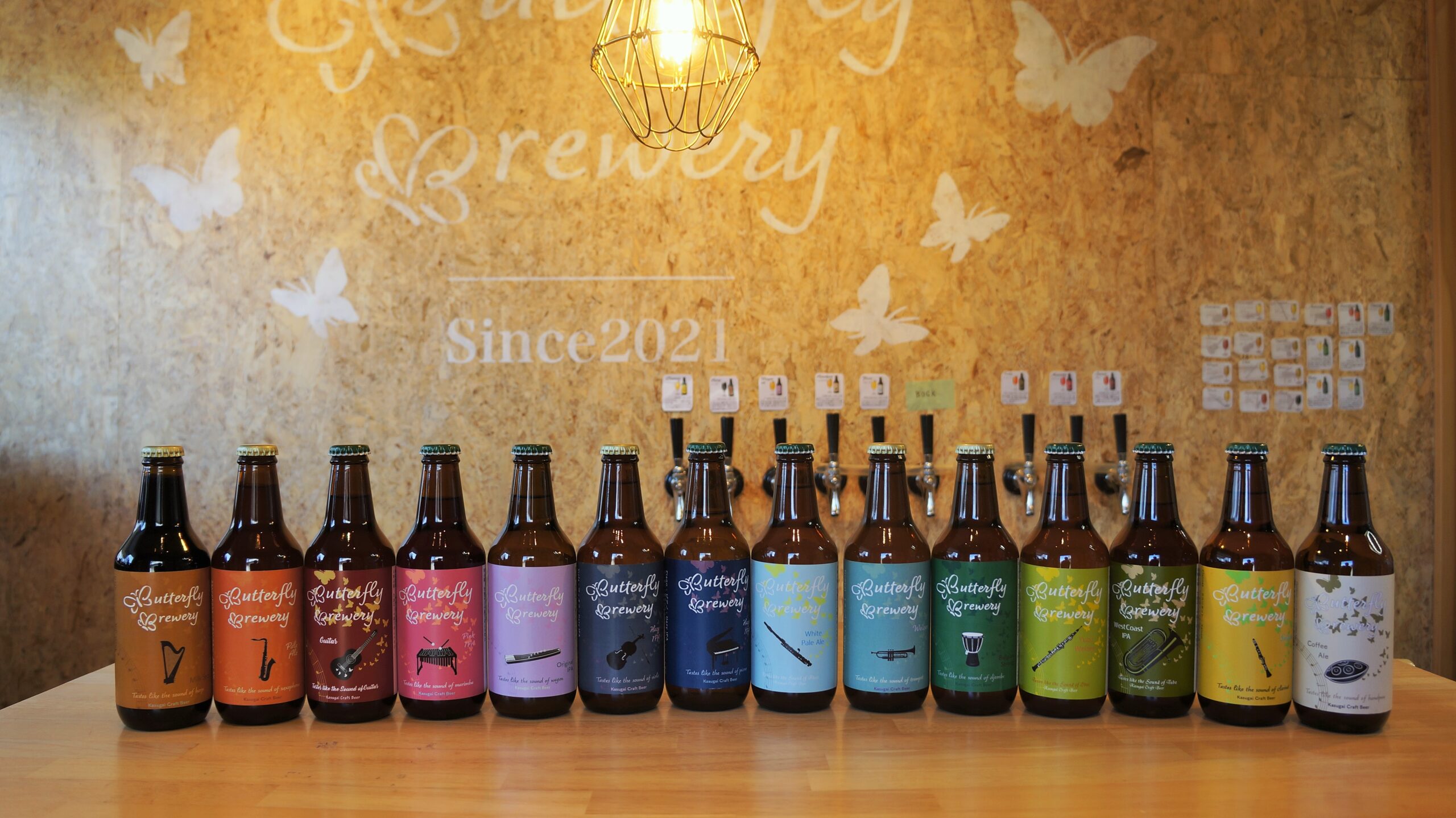 春日井市初のクラフトビール醸造所です。ビールにはフルート、ピアノ、マリンバなどクラフトビールの個性豊かな香りと味わいから連想される楽器の名前がついています。