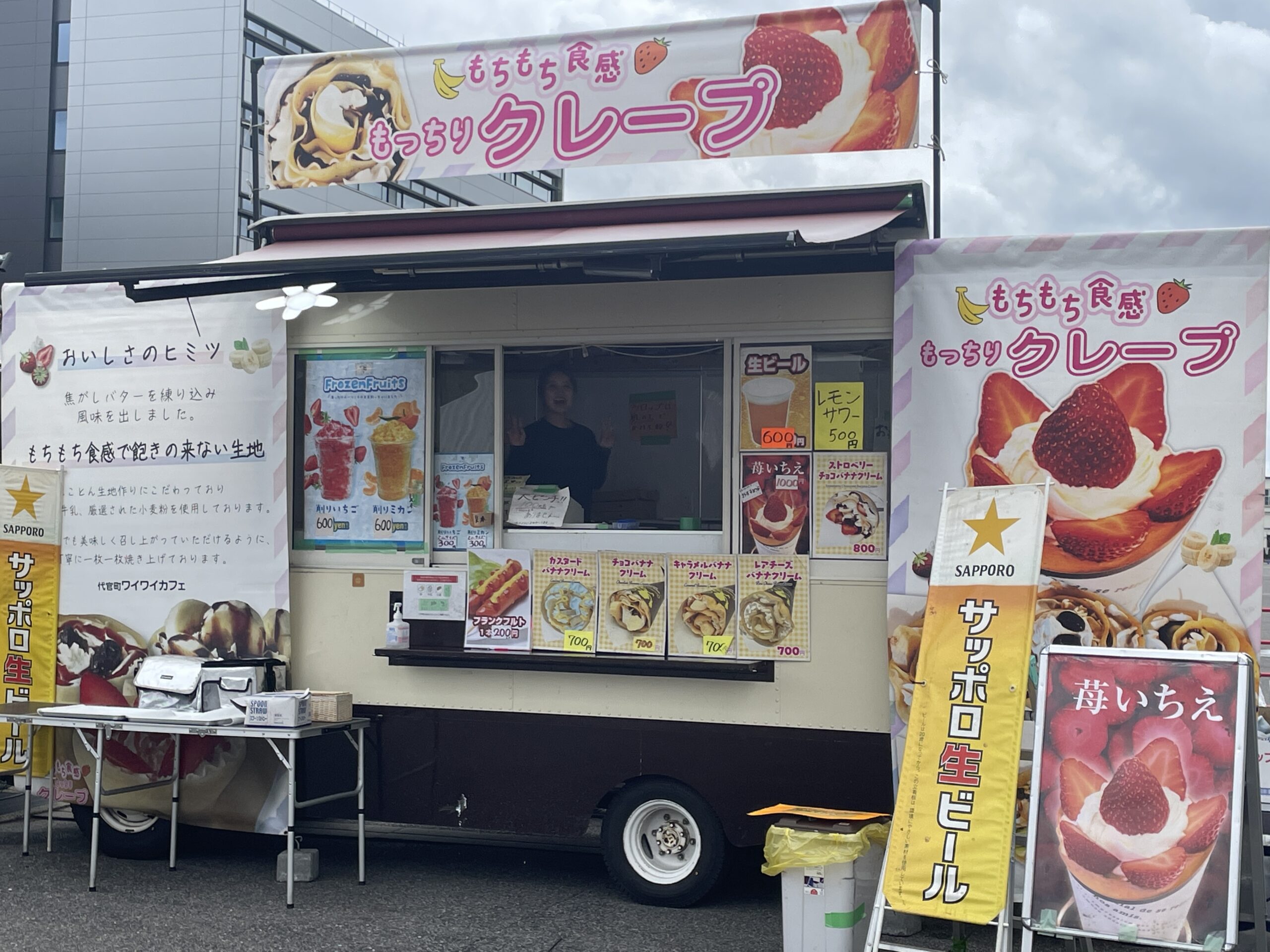 キッチンカーのクレープ屋『笑らシェ』です。今回は、お手頃価格で食べやすいミニクレープをご提供します!